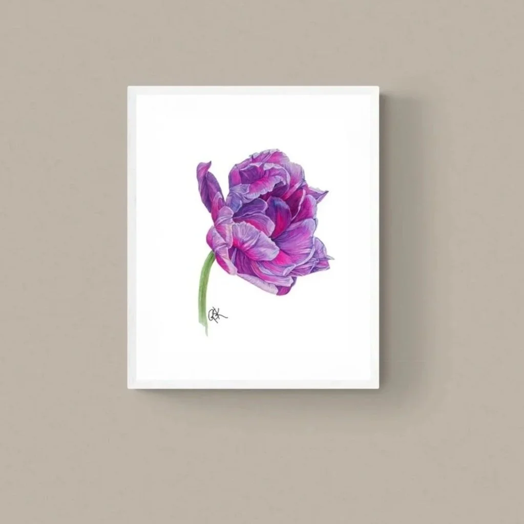 I am an artist living in the Sierra Nevada mountains, painting in a spare bedroom in my home. Around all the duties of being a mother and wife, I re-found my love of watercolor after two major hip surgeries. I allowed myself to lean into my work and focus on bright and happy florals.